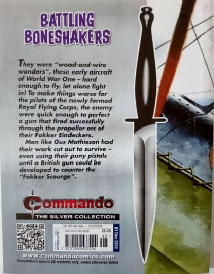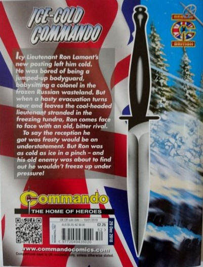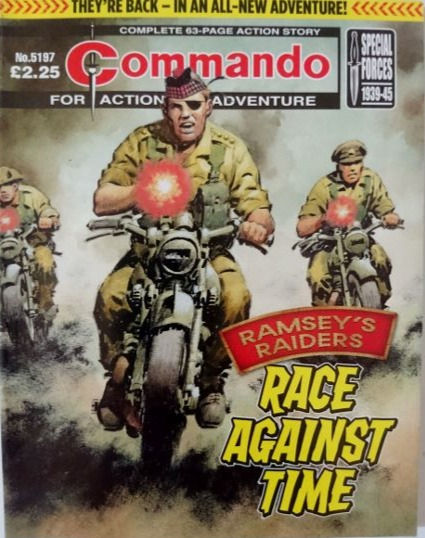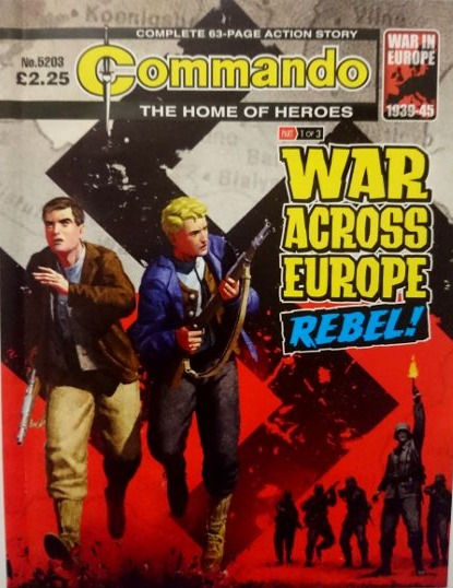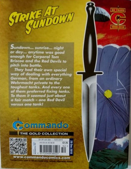 Commando For Action and Adventure, formerly known as Commando War Stories in Pictures, and colloquially known as Commando Comics, is a British comic book magazine that primarily draws its themes and backdrops from the various incidents of the First and Second World Wars. It was first published in July 1961 and is still in print today. It is noted for its distinctive 7 × 5½ inch, 68 page format that became a standard for these kinds of stories. Commando has remained more popular than many other British war comics, because of its character based stories and detailed black and white artwork, with only the covers in colour. It is considered by some to be one of the greatest war comics in history.