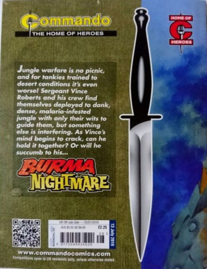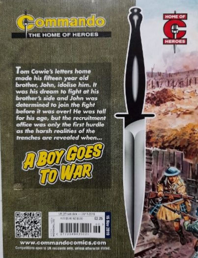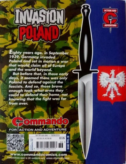Commando For Action and Adventure, formerly known as Commando War Stories in Pictures, and colloquially known as Commando Comics, is a British comic book magazine that primarily draws its themes and backdrops from the various incidents of the First and Second World Wars. It was first published in July 1961 and is still in print today. It is noted for its distinctive 7 × 5½ inch, 68 page format that became a standard for these kinds of stories. Commando has remained more popular than many other British war comics, because of its character based stories and detailed black and white artwork, with only the covers in colour. It is considered by some to be one of the greatest war comics in history.