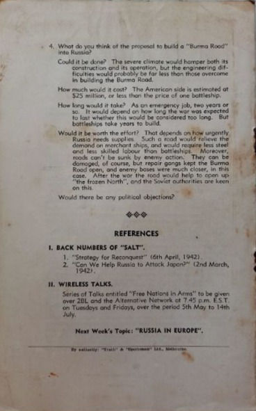 Current Affairs Bulletin Vol.1 #6 'Russia In Asia' (1942)